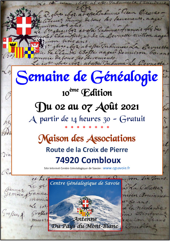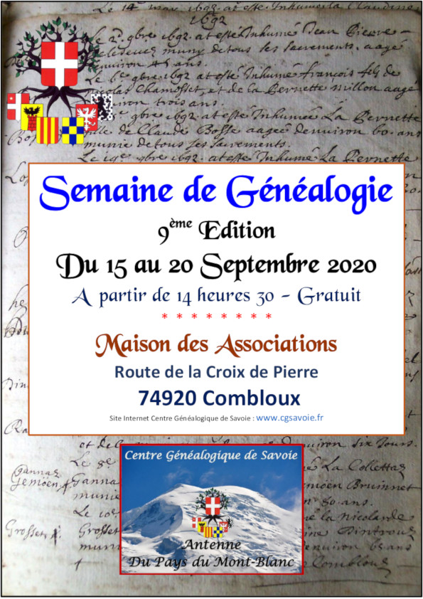 9e Semaine de Généalogie 2020, par Antenne Pays du Mont-Blanc. Lieu : Combloux