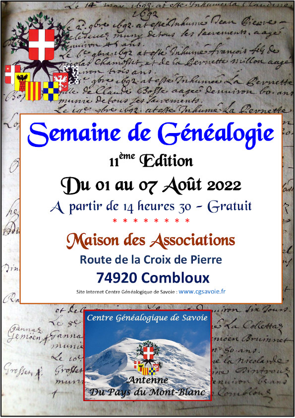 8e Semaine de Généalogie 2020, par Antenne Pays du Mont-Blanc. Lieu : Combloux